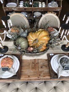 “Everyone is getting ready for the Holidays. So if you’re that family that gets together for Thanksgiving and gathers around the table, a lot of people are coming in to get that table set up and ready. That means it’s place settings, centerpieces, little things for console tables. It’s a big season to get together in the kitchen, so people are wanting stuff to style their islands with. Color wise for fall, it’s those bright oranges have faded Into the background, a lot of people are going for muted colors. It’s a lot of pomegranates, pares, acorns, and wheat grass. A lot of the neutral tones of fall.”