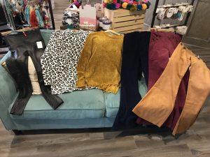 Caleigh Phipps, of Simply Chic Boutique in Bossier City, says the major clothing trends for fall are animal print, chenille sweaters, flared pants and leather Spanx.