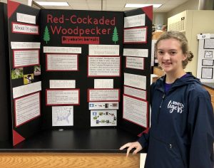 The students seem to have embraced this concept through their explorations. Raelee Craft is a freshman at Benton High School who participated in the fair. The endangered species she chose to study was the Red-cockaded Woodpecker.