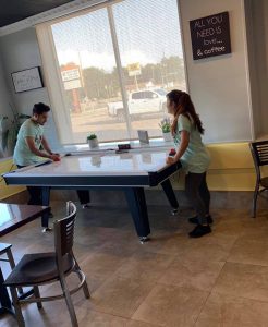 And with TV’s, an air hockey table, and a large variety of delicious drinks, Boba Xpress is the perfect hangout spot. Doan has two kids, so he wanted to create a space that parents would be okay with their kids hanging out after school.