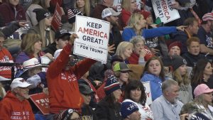 Dozens of souvenir vendors were selling caps, shirts, hoodies, jackets and other assorted Trump memorabilia. While it was quite chilly waiting outside in the drizzle before the venue doors opened, people kept in good spirits in what could best be described as a festive atmosphere. Kayleigh McEnany, National Press Secretary with the Trump Campaign shared some expectations prior to the start of the rally.